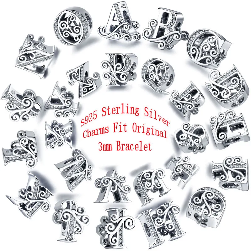 Qikaola 100% Настоящее серебро 925 буквы алфавита A-Z Шарм имя Буси...