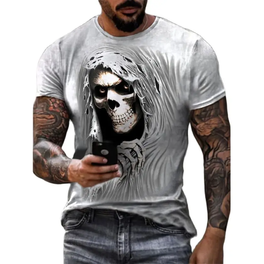 Футболка мужская с 3d-рисунком черепа, ужасный топ с круглым вырезо...
