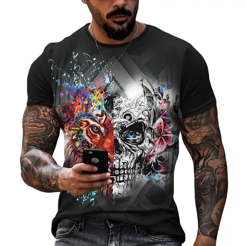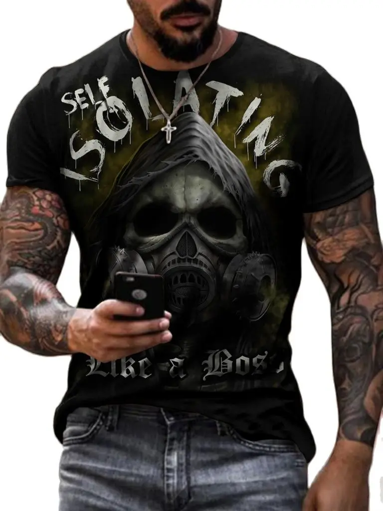 Мужская футболка с коротким рукавом, свитер с 3D-принтом черепа на ...