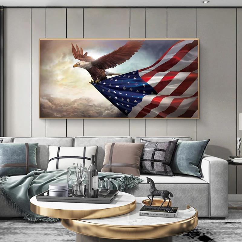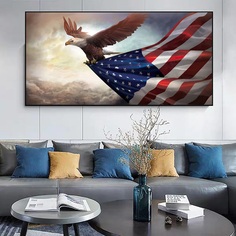 Картина на холсте с американским флагом и орлом