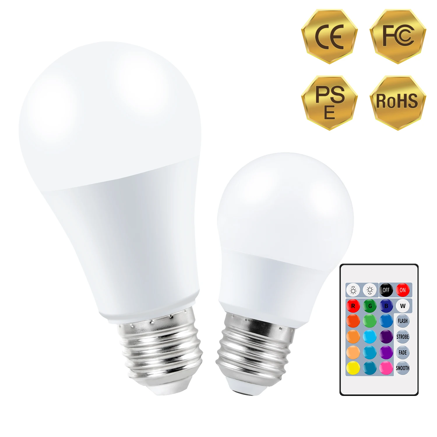 Светодиодная лампа, цветная меняющаяся лампа, светодиодная лампа RGBW, Белый декор, домашняя лампа E27 с умным управлением, светодиодсветильник с регулируемой яркостью, 7 Вт, 12 Вт, 15 Вт, RGBW