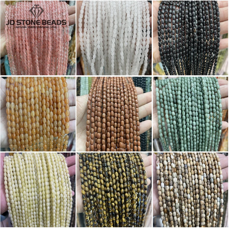Бусины из натурального камня 4x6 мм, рисовый нефрит, агат, бирюза, свободные бусины, искусственная бижутерия, драгоценный камень