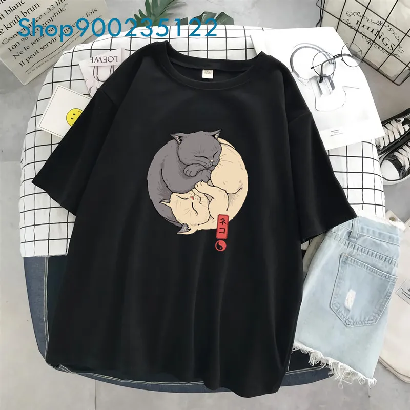 Футболка женская с милым мультяшным котом, хлопковая футболка с кор...