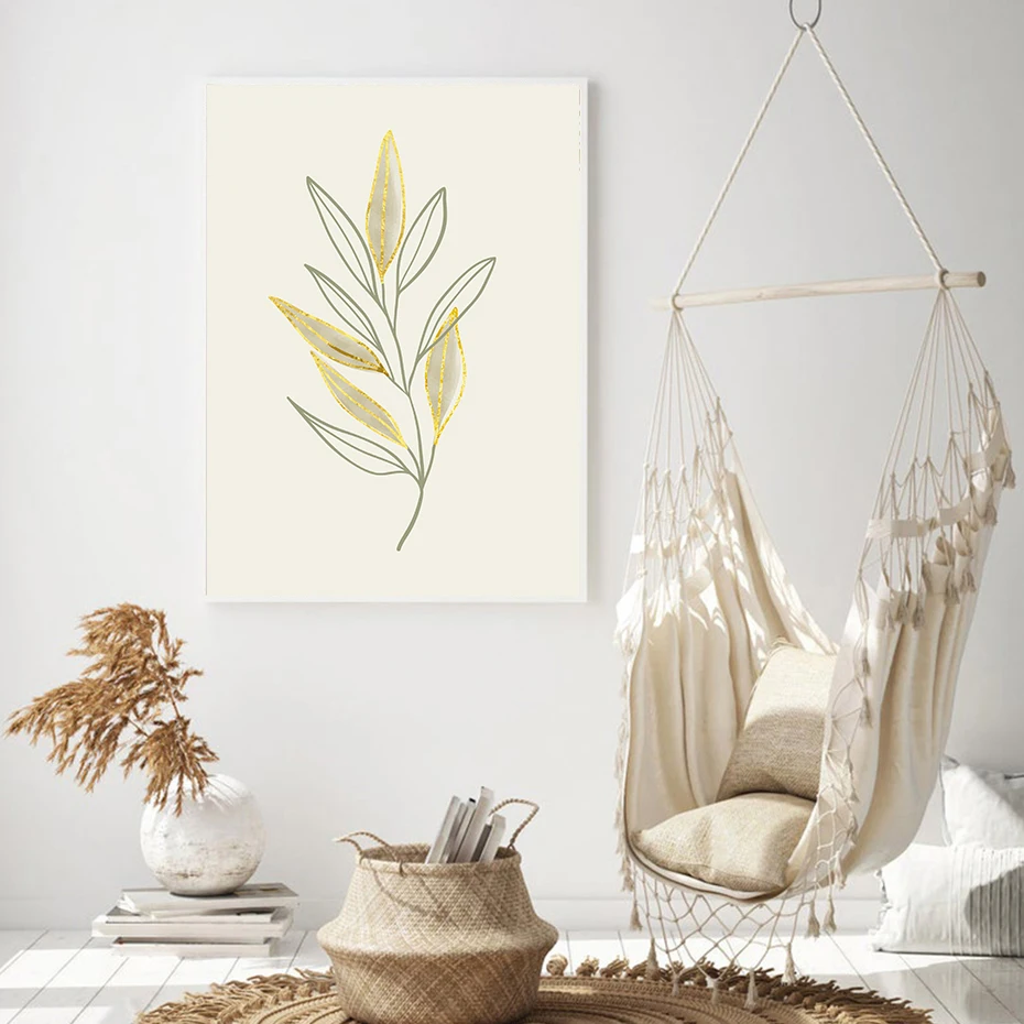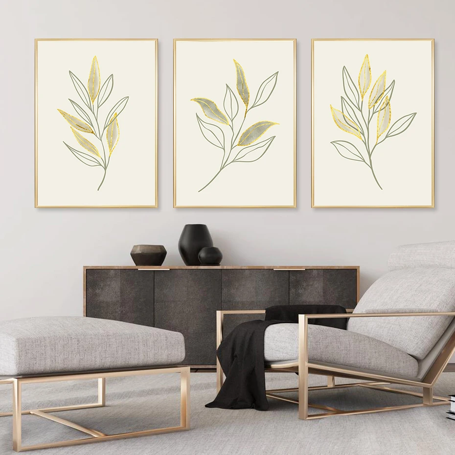 Акварельная золотая линия, художественный плакат с рисунком, ботаническая настенная живопись на холсте, Современная печать, декор интерьера гостиной