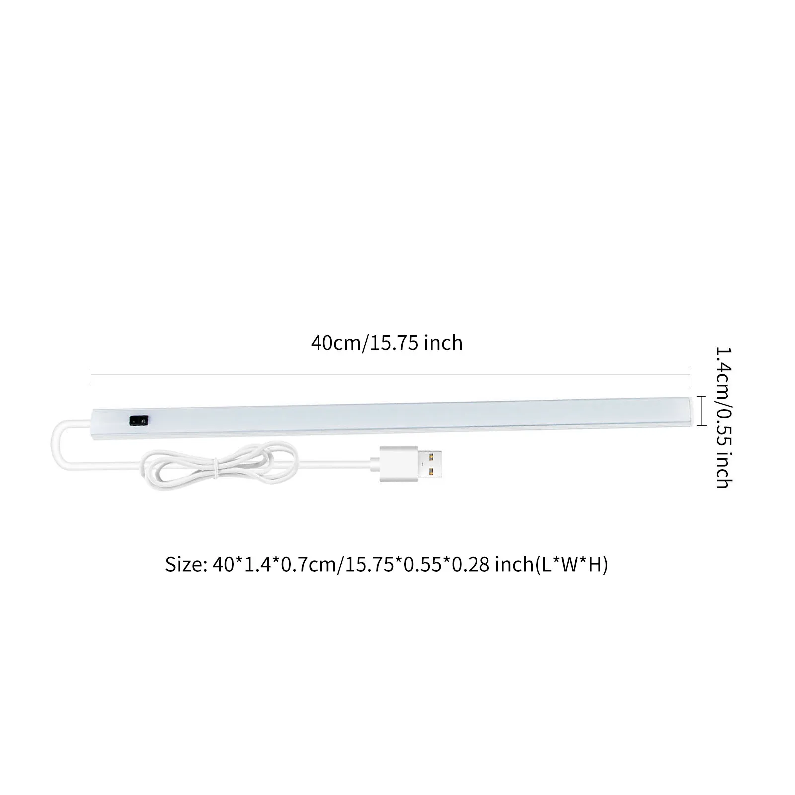 Размеры: 20*1,4*0,7 см/7,86*0,55*0,28 дюймов (2,5 Вт); 30*1,4*0,7 см/11,79*0,55*0,28 дюймов (3,5 Вт); 40*1,4*0,7 см/15,72*0,55*0,28 дюймов (4,5 Вт); 50*1,4*0,7 см/19,65*0,55*0,28 дюймов (5,5 W) (Д * Ш * В)