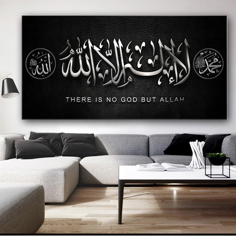 Арабская каллиграфия Аллах Мохаммед, Исламская картина, постер на холсте и принты, религиозная мусульманская Библия, настенное искусство, декор для гостиной