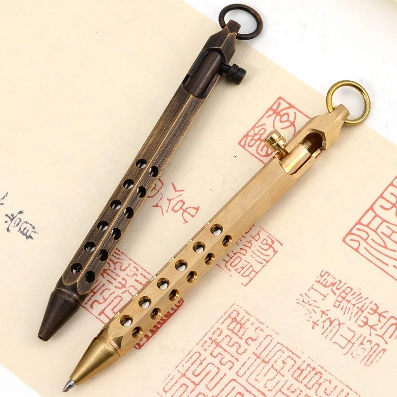 Латунная стальная головка для атаки, тактическая тонкая форма, дизайнерская ручка, Спортивная безопасная аварийная самооборона, принадлежности с подвесным кольцом