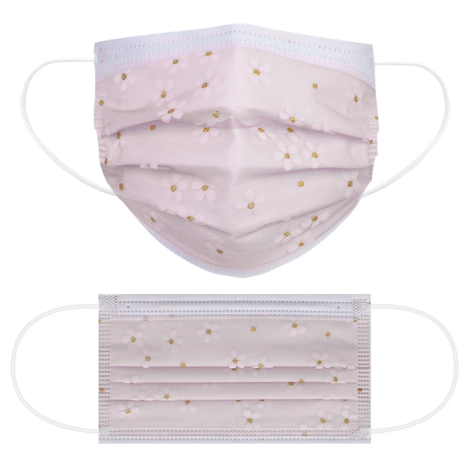 Маска для взрослых одноразовая с блестками и цветочной вышивкой, 4 слоя, 50 шт.