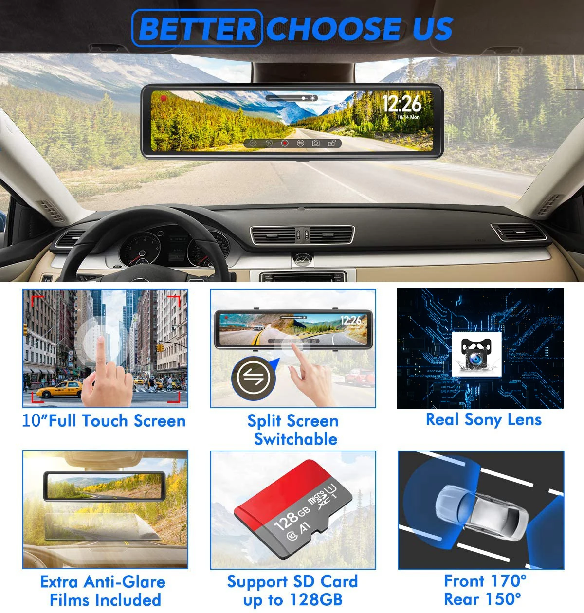 Применение: 2K Камера, потоковый медиа зеркало заднего вида, а также отличное ночное видение, видео, 24 часа в сутки для парковочной системы, столкновения сенсор, передние и задние двойные видео (широкий динамический диапазон), циклическая запись, Adjustabl угол обзора, Специальное крепление держатель