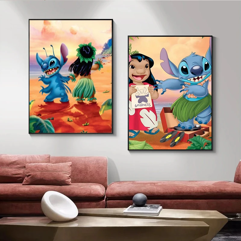 Милые Мультяшные постеры Disney из Лило и ститча, картины и принты для ститча, настенные картины для декора детской комнаты