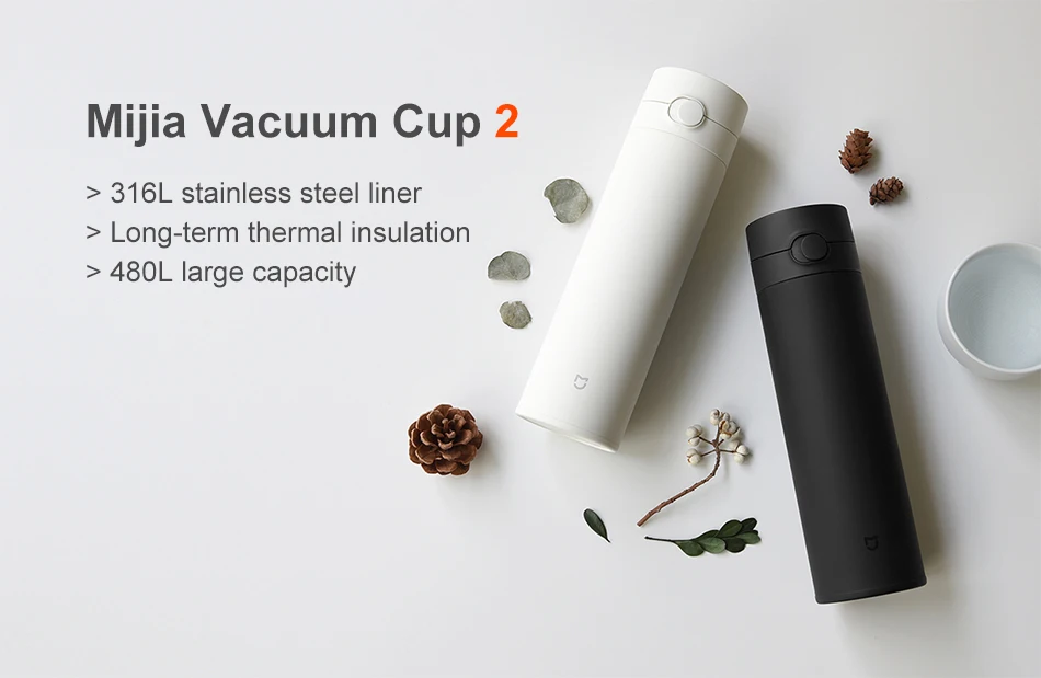 Чашка для воды Xiaomi 2 поколения, 480 мл, термос сохраняющий теплохолодную чашку, портативная дорожная чашка с замком из нержавеющей стали 316L, дизайн с одной ручкой