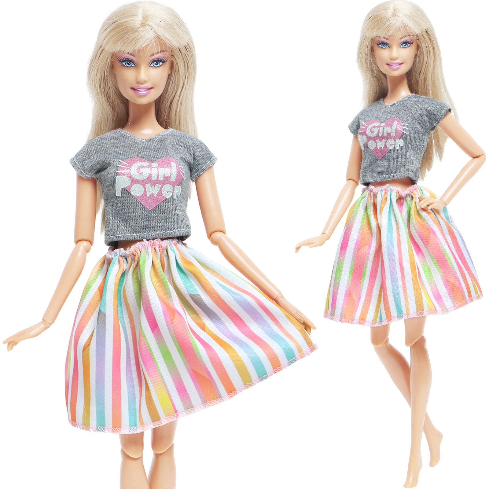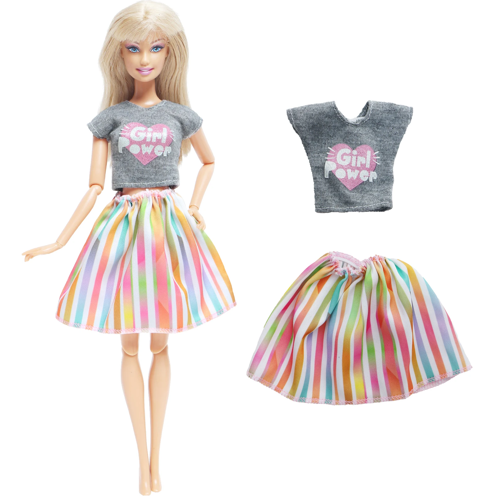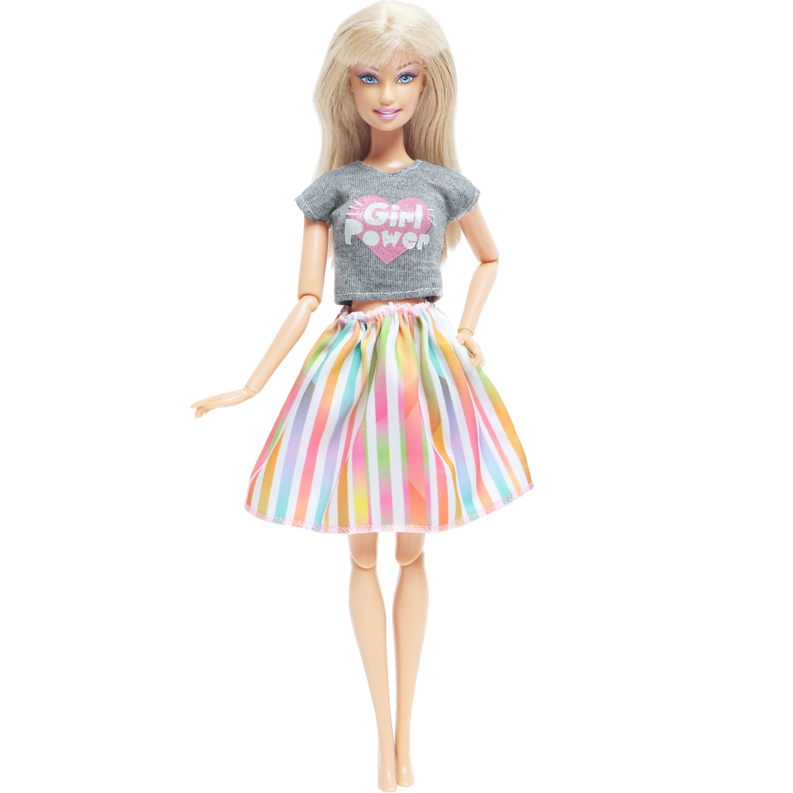 Один шт. модное платье для куклы, милая серая рубашка, радужная юбка, повседневная одежда, Одежда для куклы Барби, аксессуары для кукол, детские игрушки