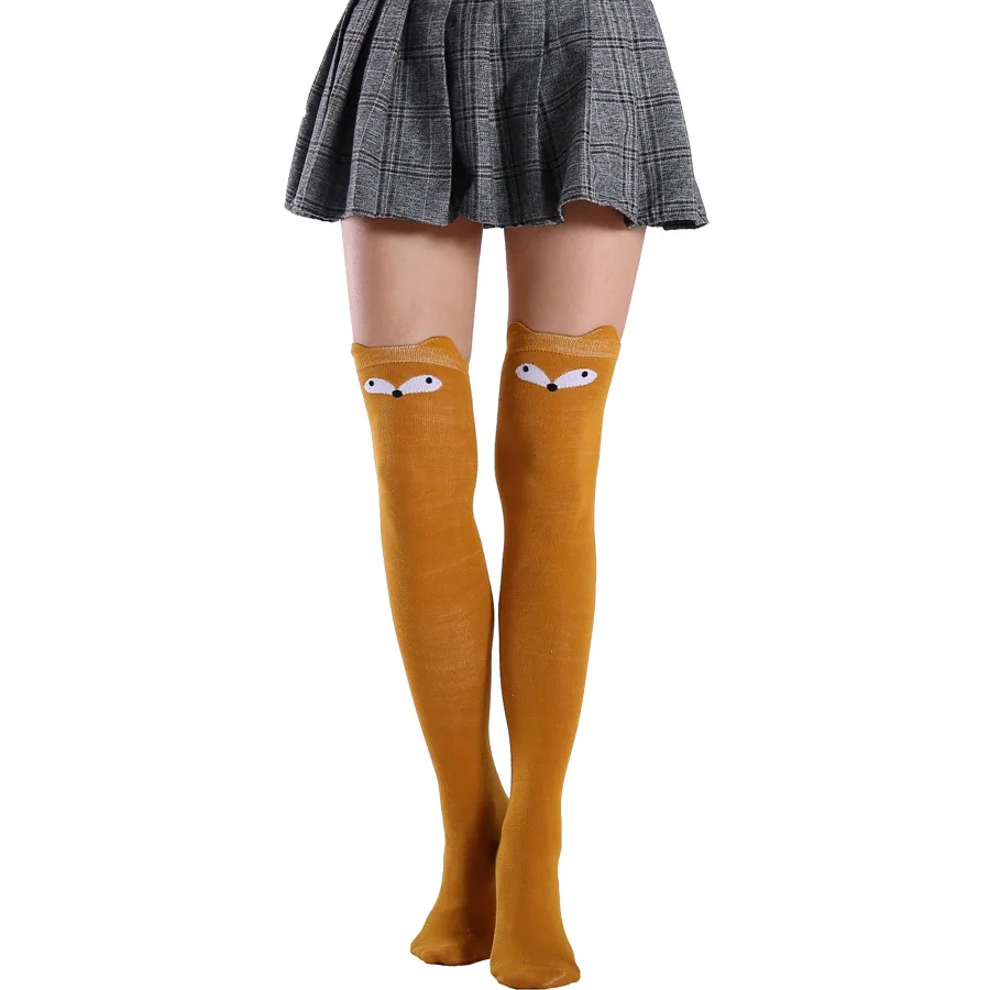 Новые женские яркие хлопковые черные белые милые сексуальные теплые длинные носки с котом Medias до бедра для дам выше колена