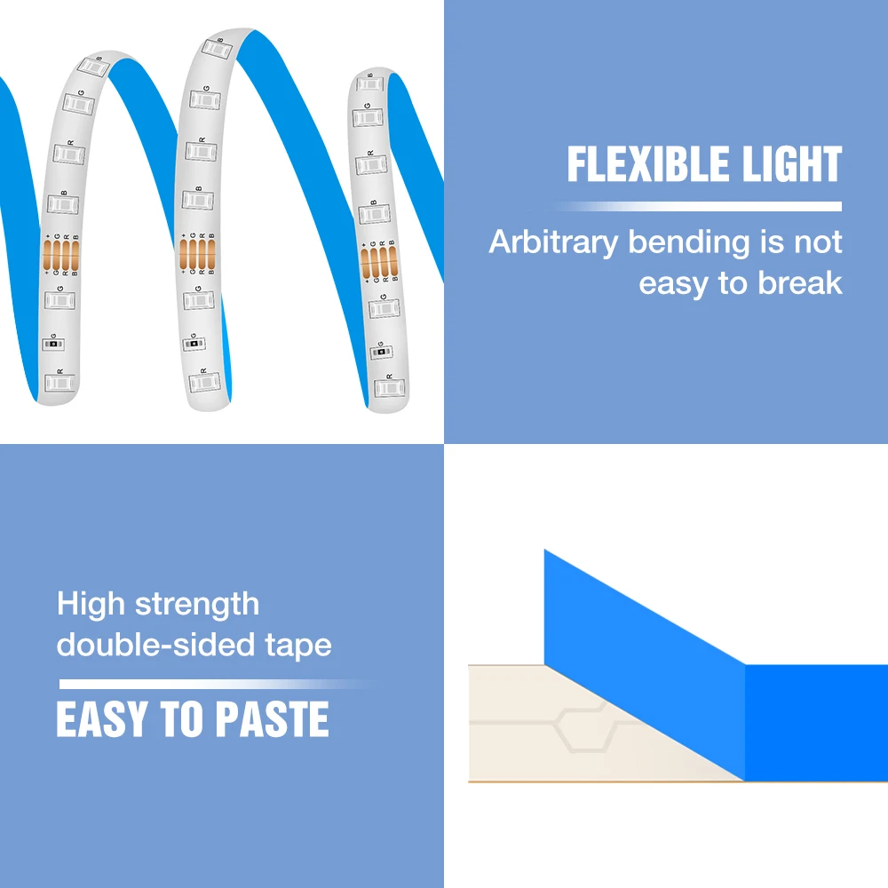 * Прочная Двусторонняя лента на задней части полосы, светильник легко вставляется.