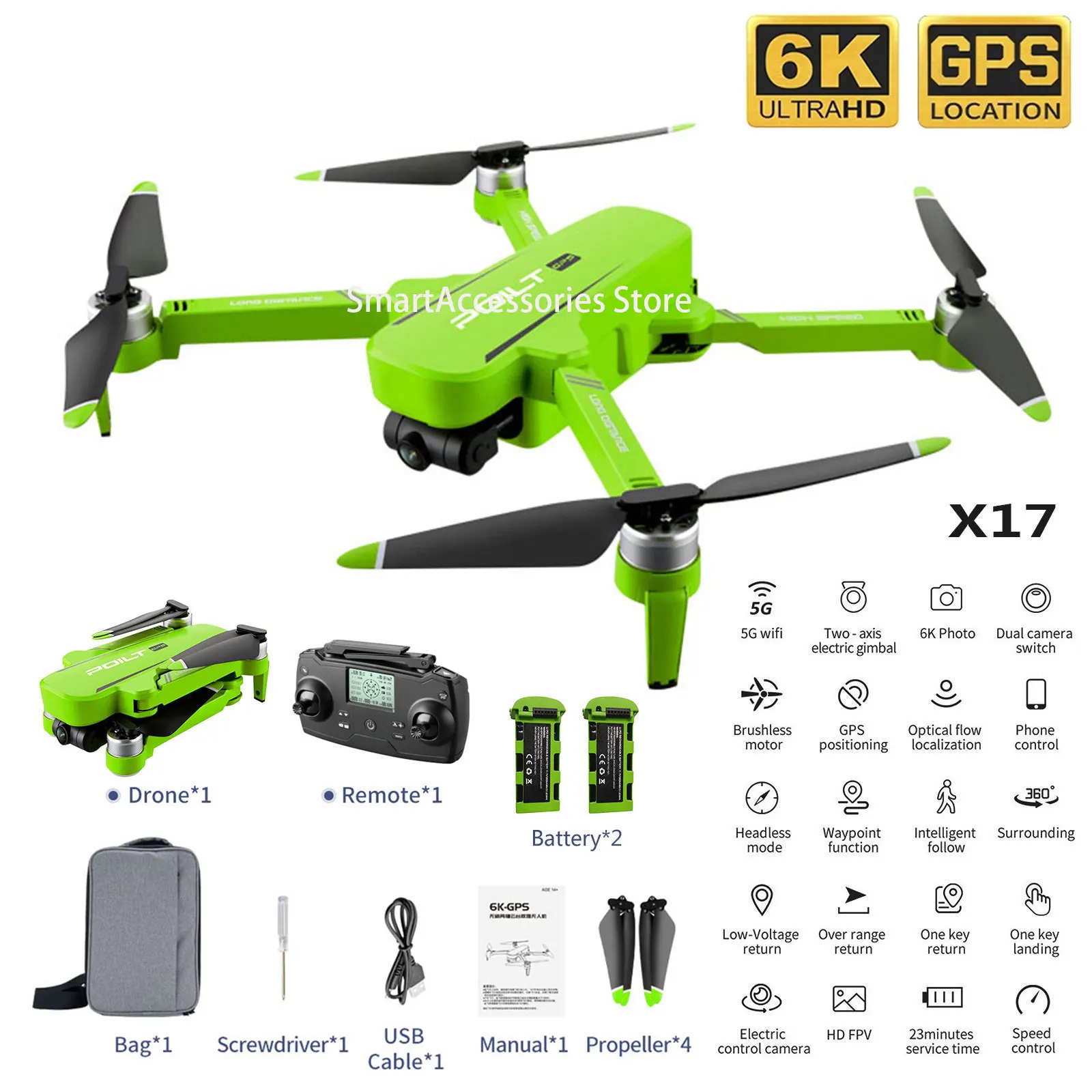 2021 НОВЫЙ X17 Двойные HD-камеры Дрон 2,4 ГГц Беспроводной пульт дистанционного управления 5G WiFi 6K GPS Складной бесщеточный двигатель RC Drone Distance 800M летающая тарелка лопасти для вертолёта vs e58
