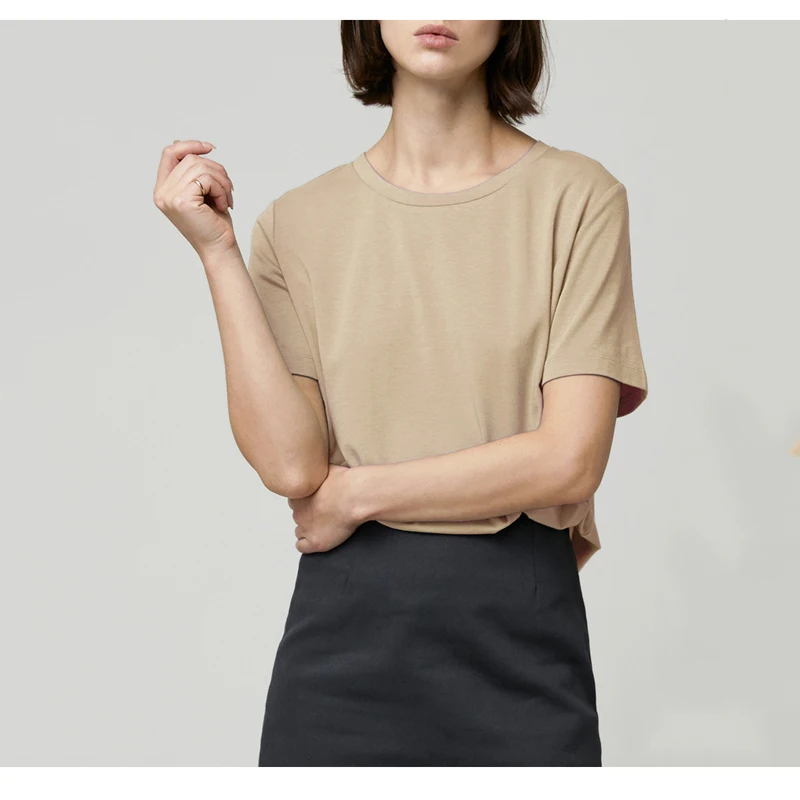 Женские топы, Однотонная футболка из чистого хлопка для женщин, лет...