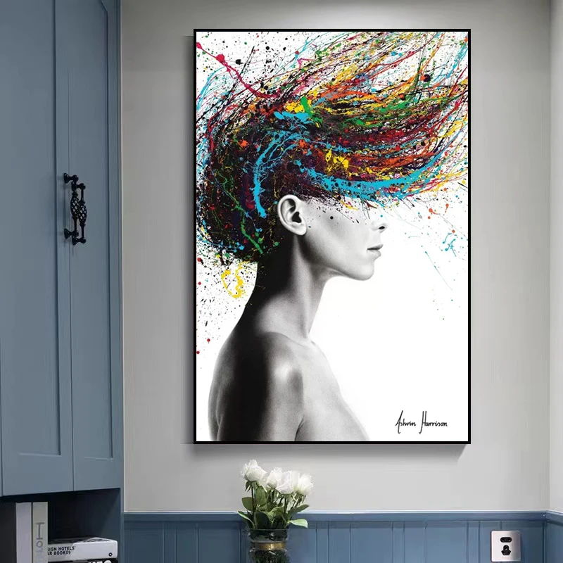 Абстрактная Картина на холсте, с изображением обнаженной девушки с красочными волосами, постеры для домашнего декора, принты для гостиной, спальни, коридора, настенное искусство