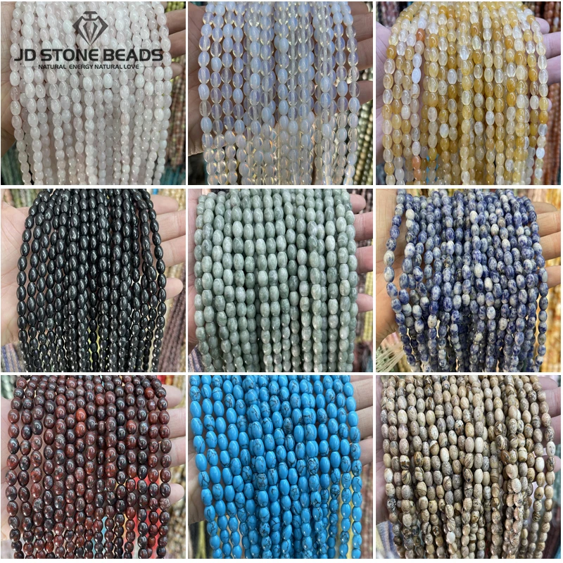 Бусины из натурального камня 4x6 мм, рисовый нефрит, агат, бирюза, ...