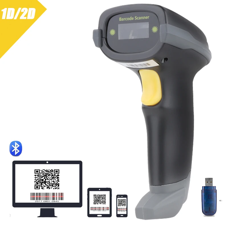 2D сканер штрих-кода беспроводной Bluetooth 2,4G мини лазерный и проводной считыватель штрих-кодов qr-кодов для супермаркета склада