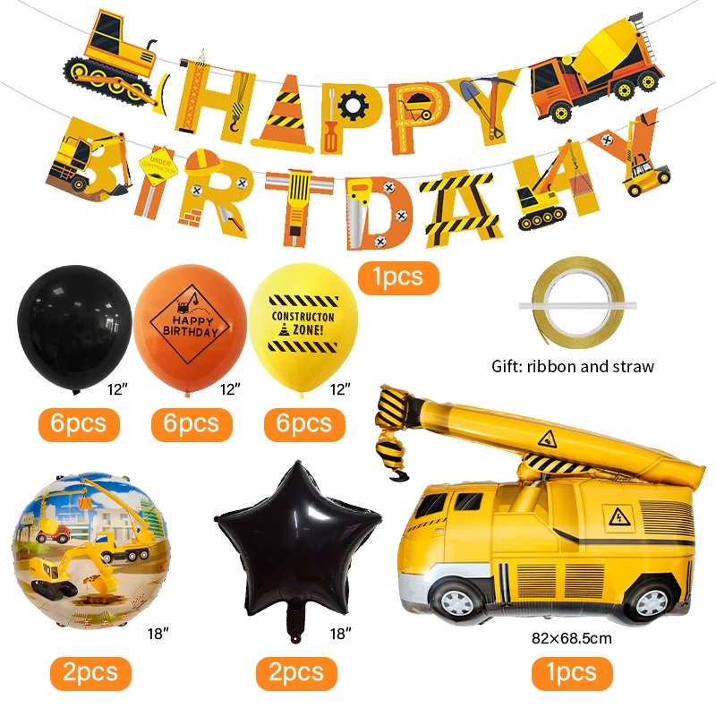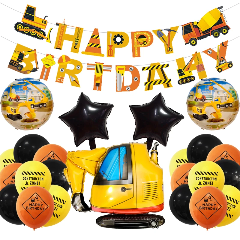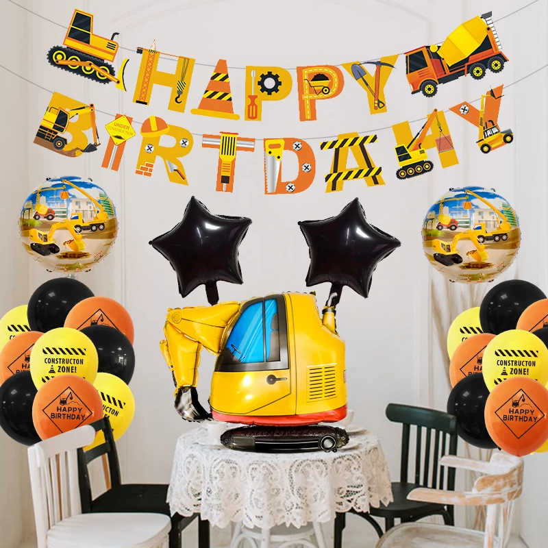 Строительные украшения для вечеринок, детский грузовик, тягач, экскаватор, фольгированные воздушные шары, декор для детского праздника