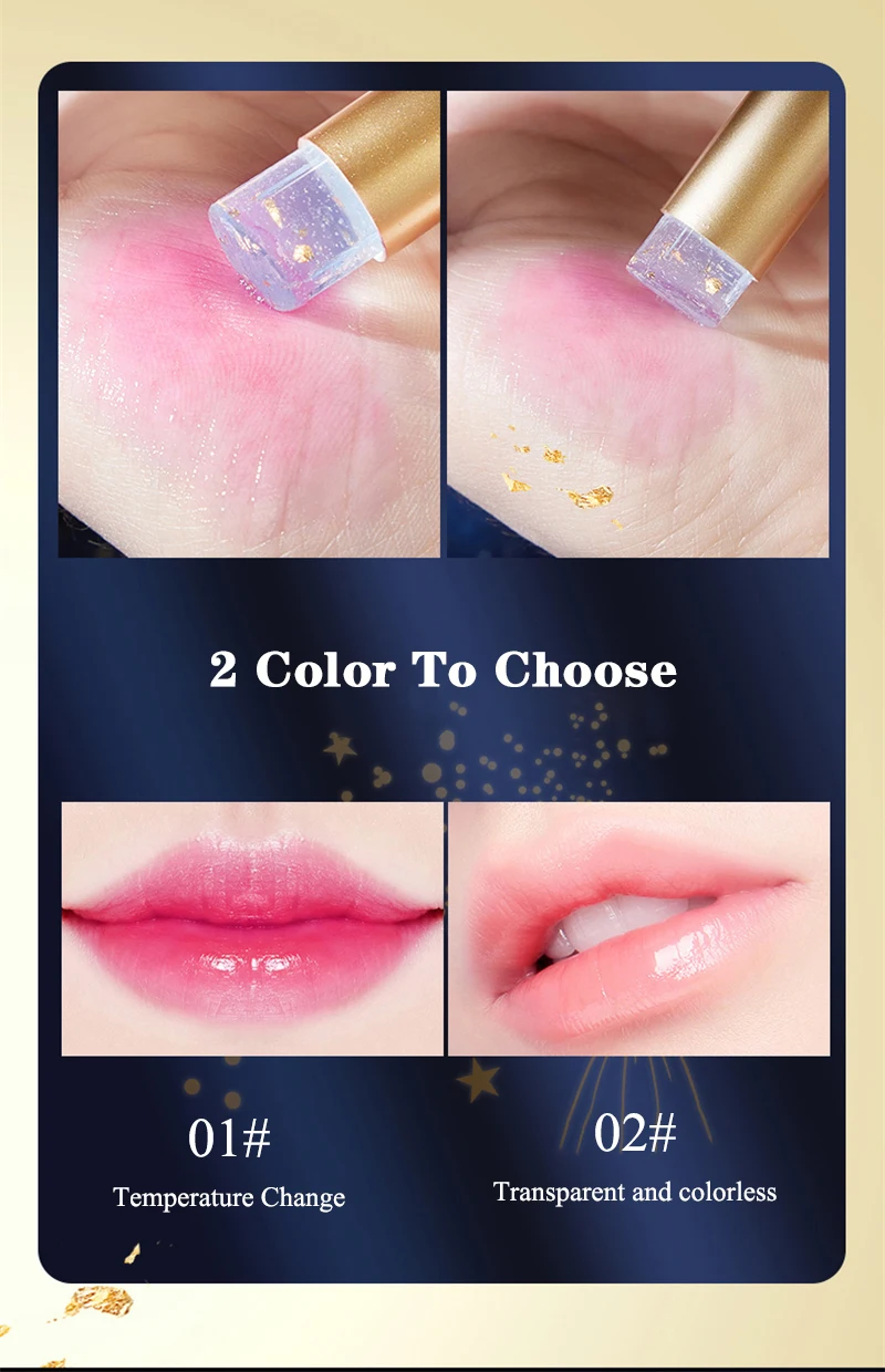 Бальзам для губ, меняющий цвет, увлажняющий, 24K золотой фольги, блеск для губ, натуральная стойкая палочка для губ, глазурь для губ, макияж, масло для ухода за губами