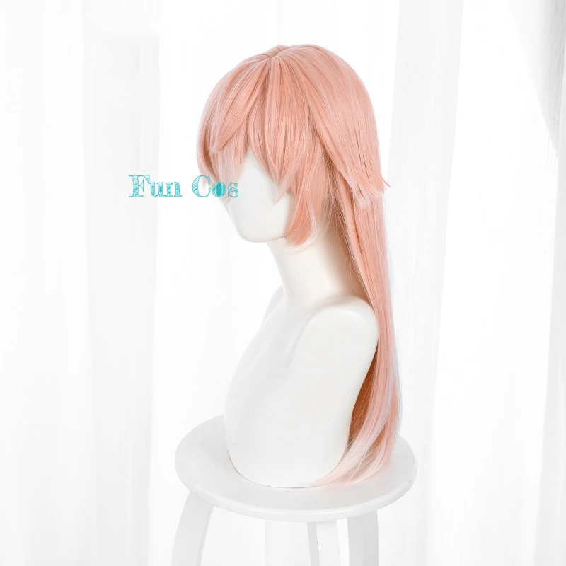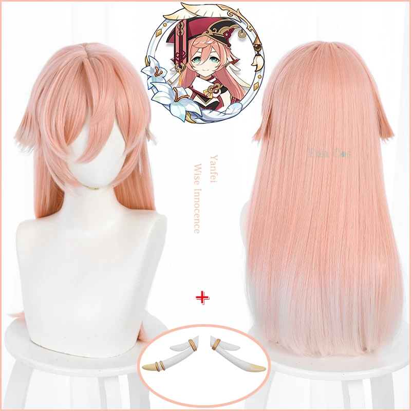 Парик из аниме Game Genshin Impact для косплея янфэй, Длинный розовый парик, заколки для волос рога, реквизит для волос для девочек, бесплатная шапочка для парика, хэллоуивечерние для ролевых игр