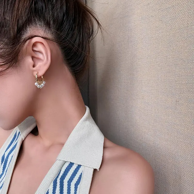 Дизайнерские темпераментные серьги-подвески с несколькими жемчужинами, корейские классические модные украшения, необычные аксессуары для женщин 2021