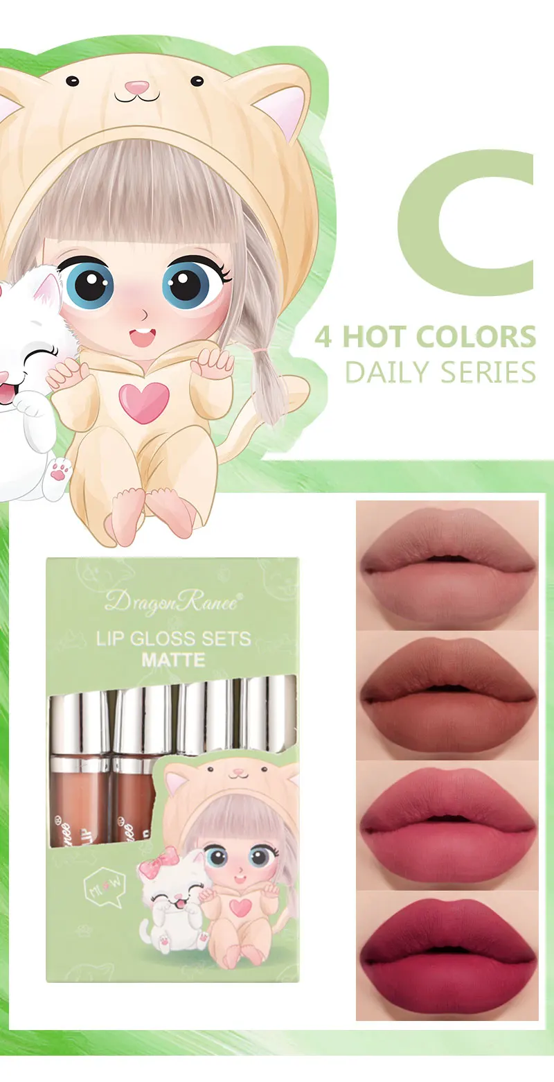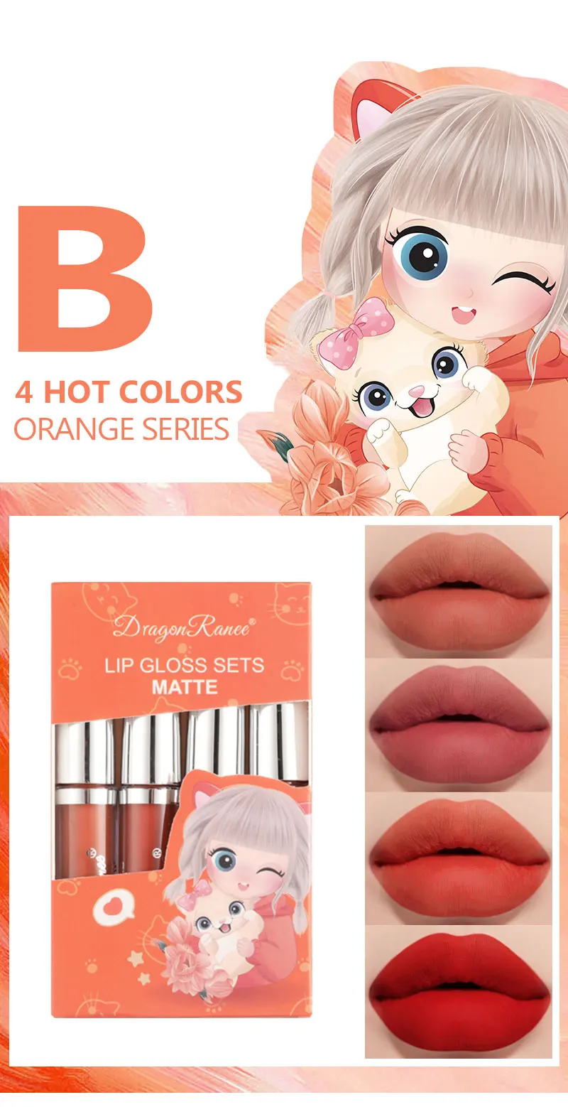 4 шт. Глянцевая бархатная матовая губная помада с гладкой текстурой водостойкая Стойкая не прилипающая чаша Высокая цветопередача блеск для губ Макияж