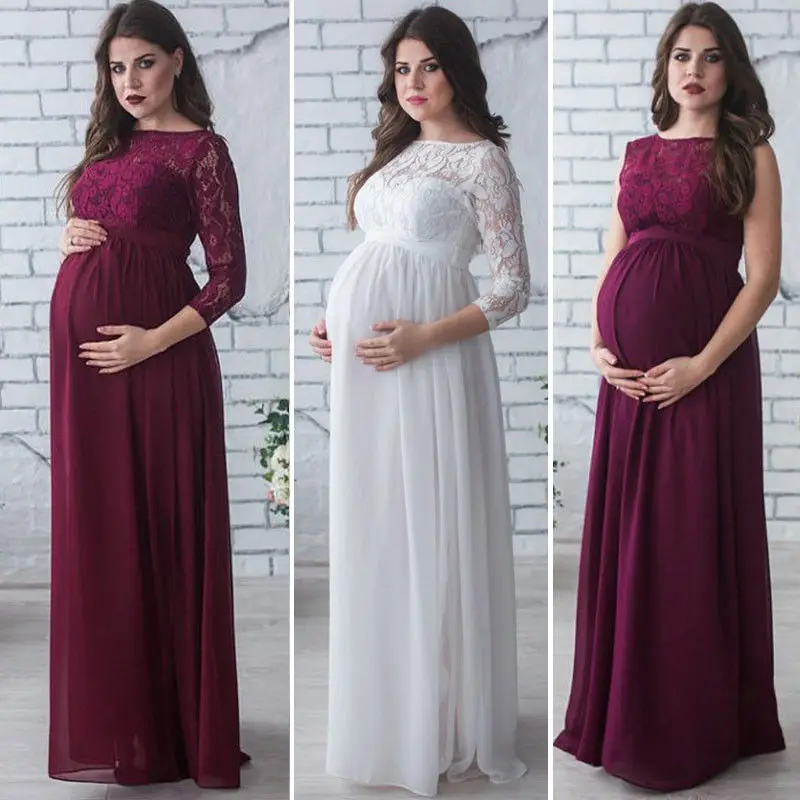 Длинное кружевное платье для беременных женщин платье-макси с рукав...