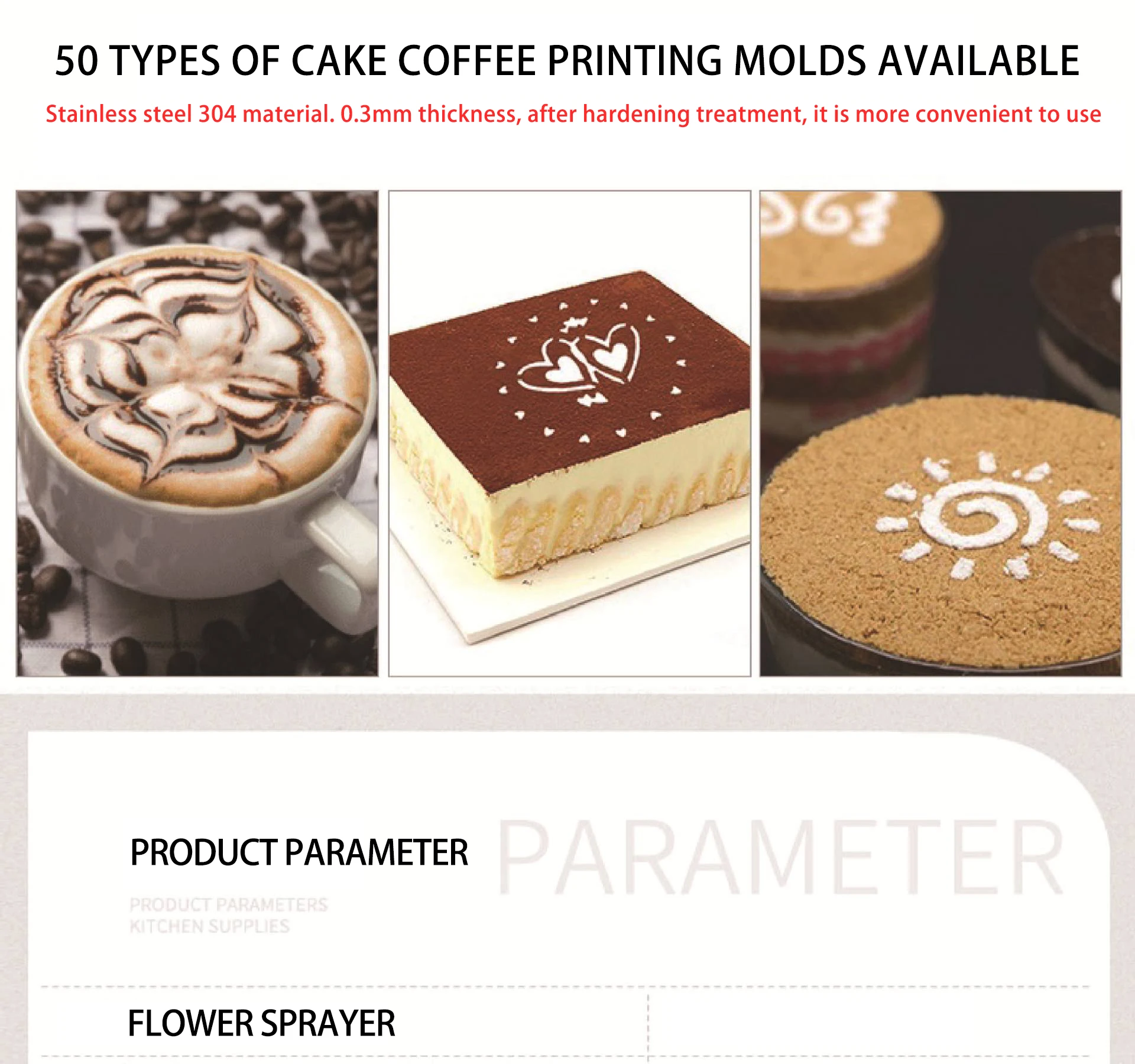 Трафареты для кофе, модная модель для печати кофе, трафареты для распыления пирожных из пены, форма для рисования кофе, капучино, сито из порошка, кухонный инструмент