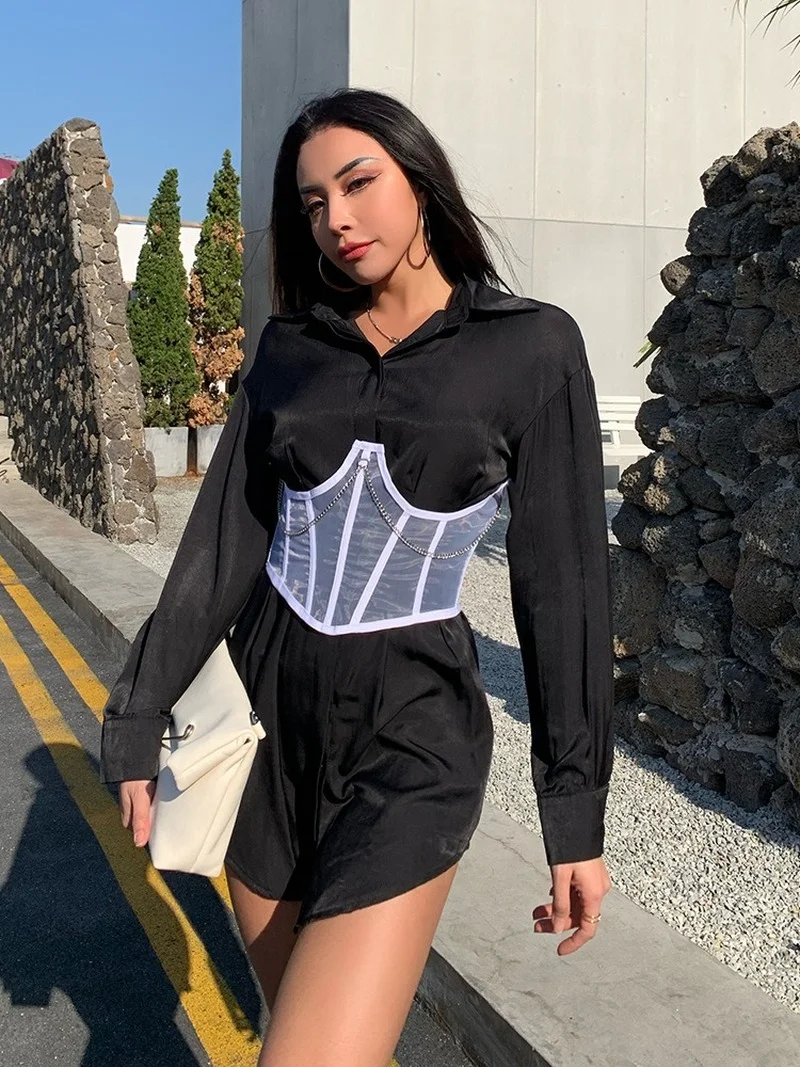 Женский сетчатый укороченный корсет с металлической цепочкой