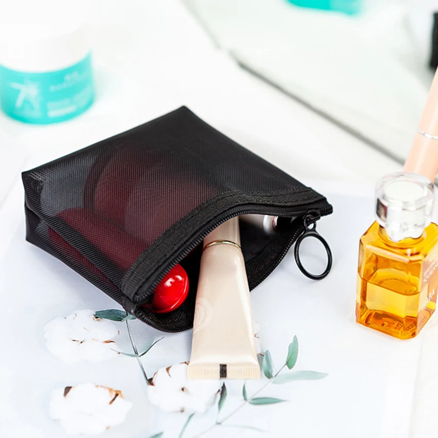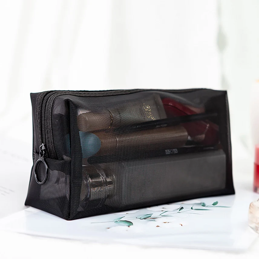 Черная сетчатая косметичка, женский прозрачный дорожный органайзер, косметичка на молнии, косметичка для туалетных принадлежностей