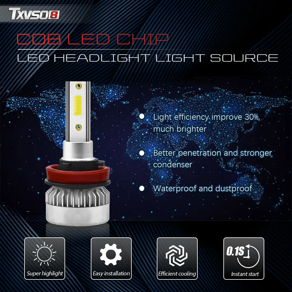 Светодиодная лампа для фар TXVSO8 H11, 110 лм, 12 В, 6000 Вт, 2020 к