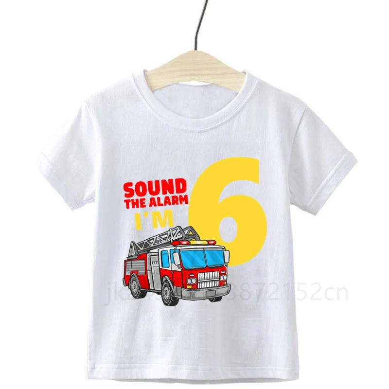 Футболка для мальчиков, для празднования дня рождения, пожарная маш...