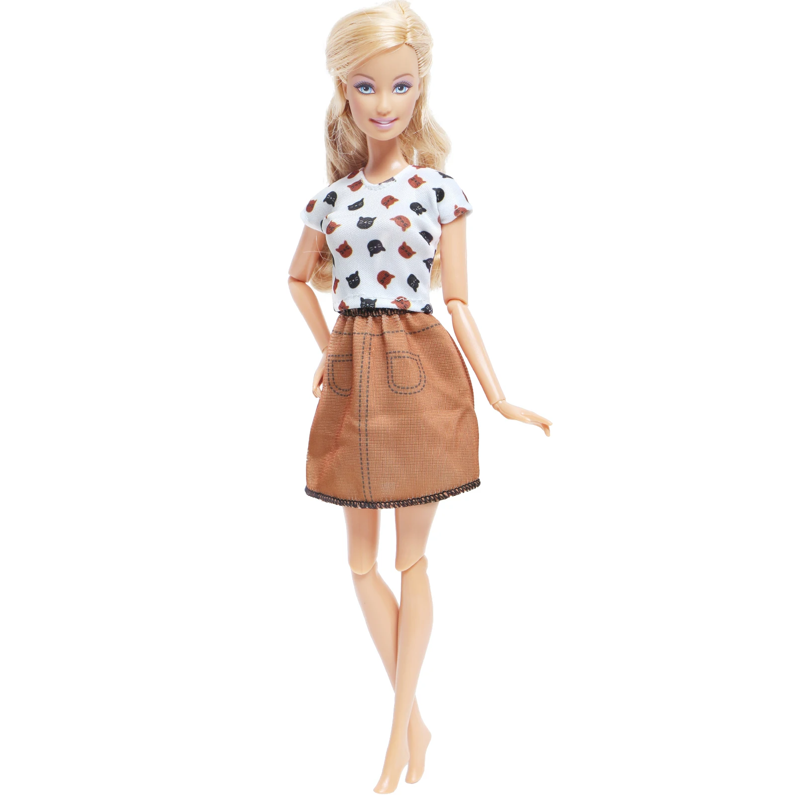 Модная Кукла с изображением милого кота, белая рубашка, коричневая юбка, повседневная одежда для Барби, аксессуары для кукол, детские игрушки, один шт.