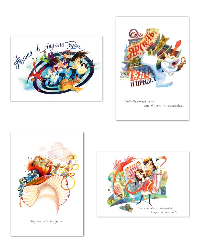 Самые любимые моменты так хорошо знакомой сказки Льюиса Кэролла «Алиса в стране чудес» легли в основу рисунков, делающих эти открытки ярким дополнением к любому подарку. Размер открытки 10x16 см.