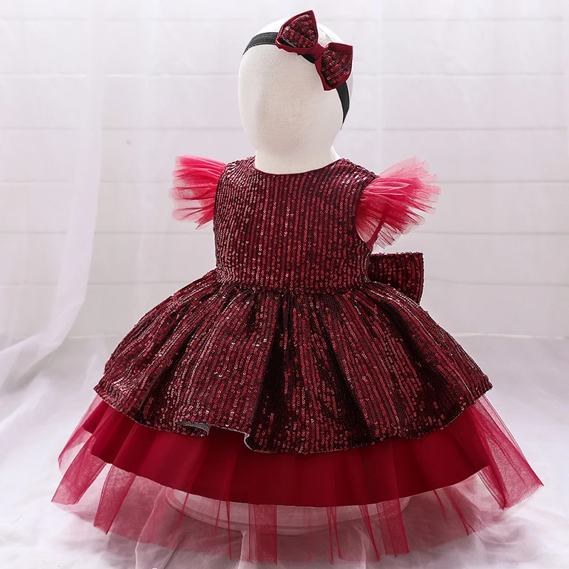 Платье для девочек, на 1 год, на день рождения, свадебное, крестильное платье, рождественское, с блестками