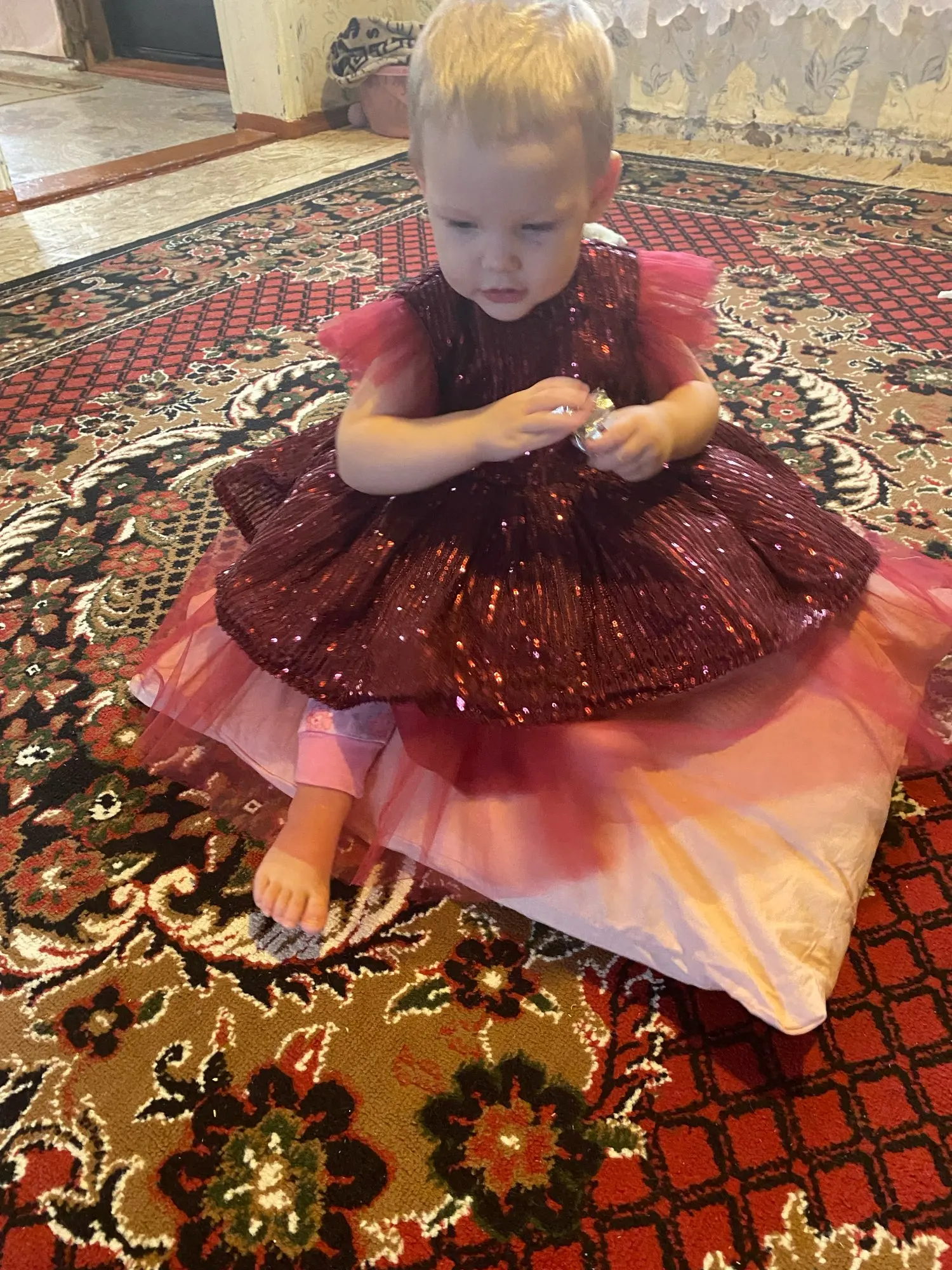 Платье пришло быстро,очень красивое,нитки не торчат,качественно сшито,нам очень понравилось