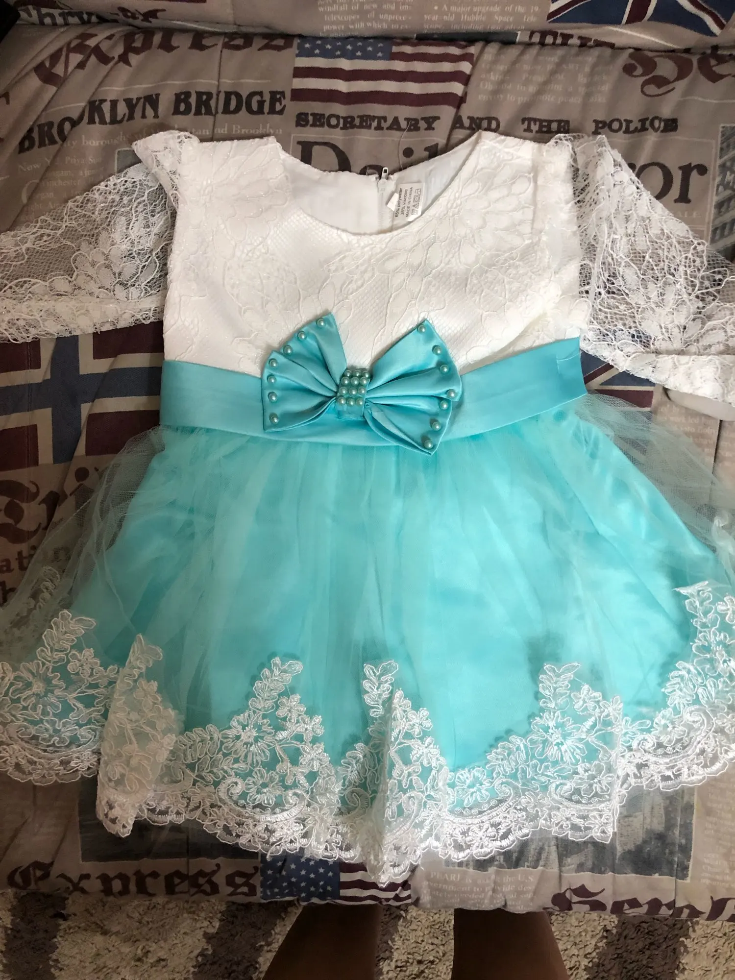 Красивое платье, мне нравится, спасибо! Как на фотографиях, как рекламируется! Моя фотография показывает, что она мнется только потому, что она сидит в упаковке, но она потрясающая! Также поставляется с бесплатной подходящей повязкой на голову