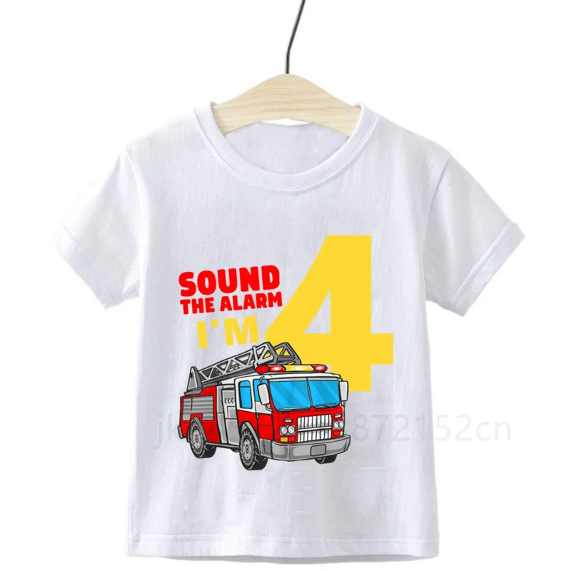 Футболка для мальчиков, для празднования дня рождения, пожарная машина, рубашка, поезд, футболки для начинающих ходить детей, рубашки для строительных грузовиков