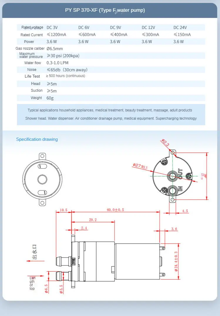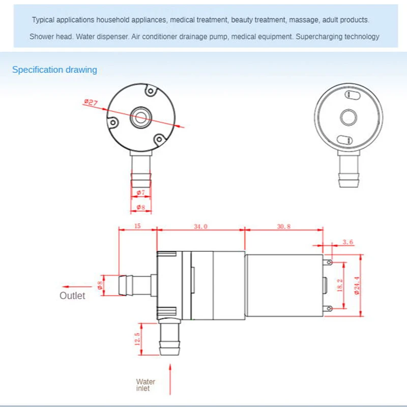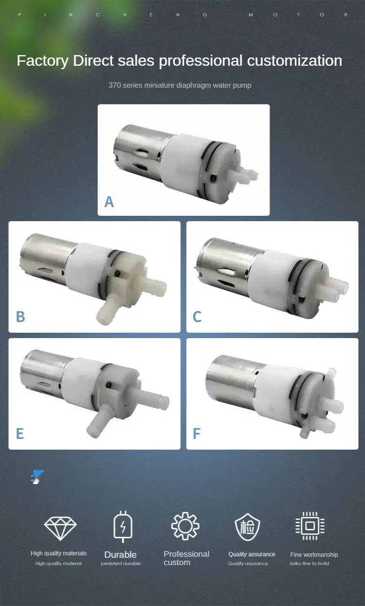 Маленький Водяной насос постоянного тока 370, 12 В с двигателем постоянного тока, низкий уровень шума, большой поток воды 0,4-лмин для питья, миниатюрный мембранный вакуумный насос KLC