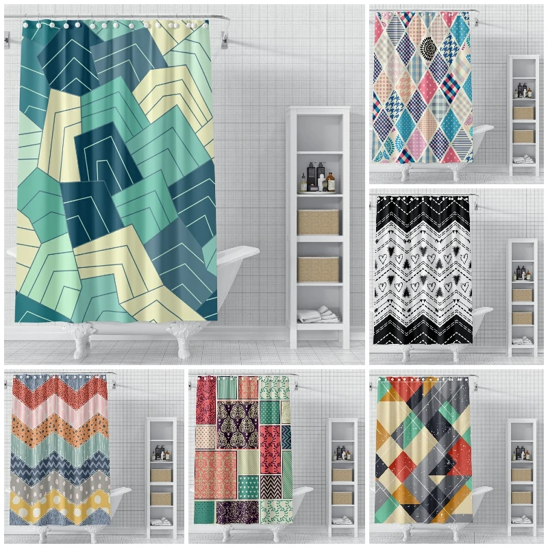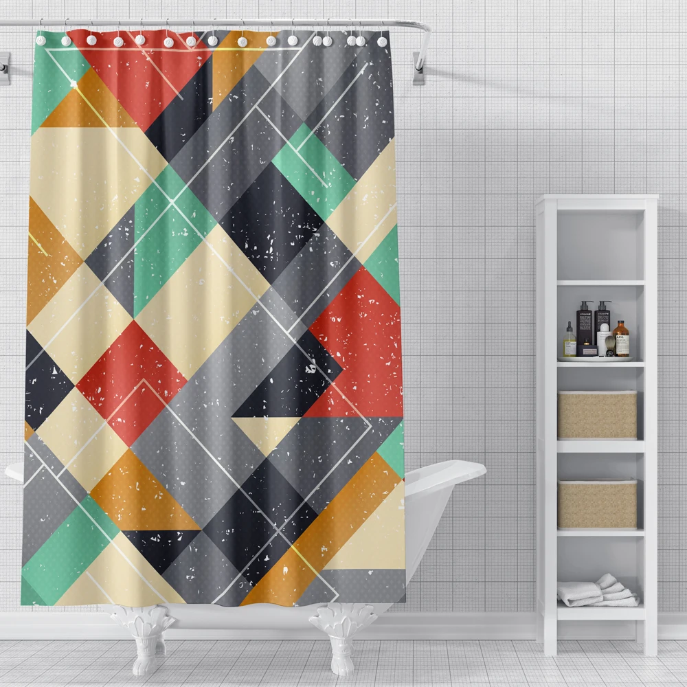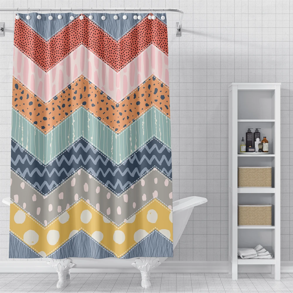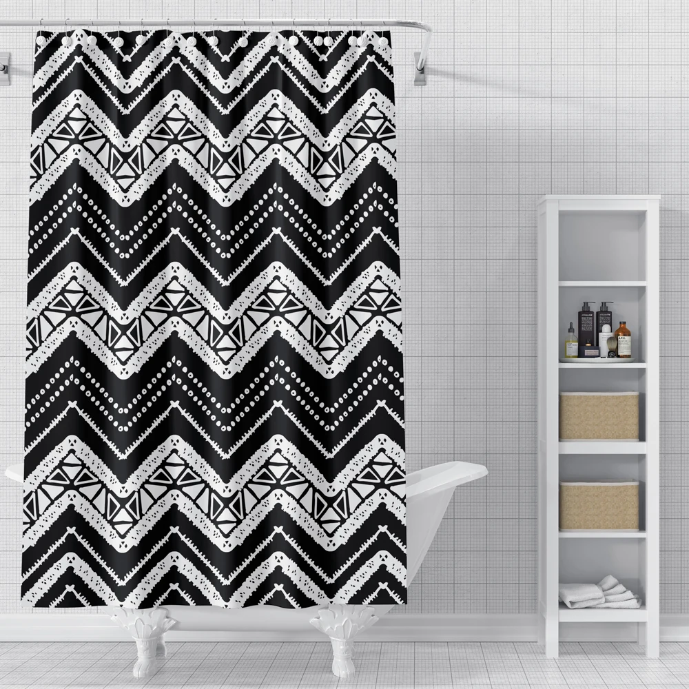 Винтажная Водонепроницаемая занавеска для душа, занавеска для душа из полиэстера с геометрическим принтом в богемном стиле, с крючками, для ванной комнаты