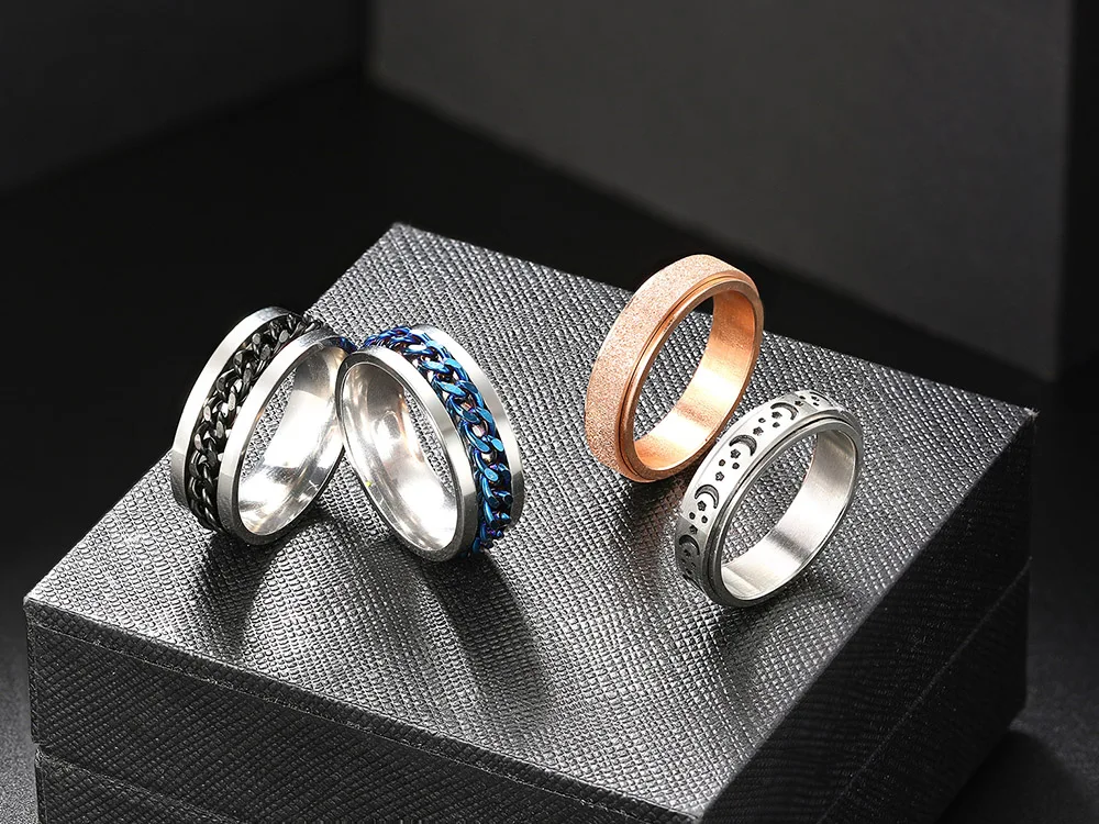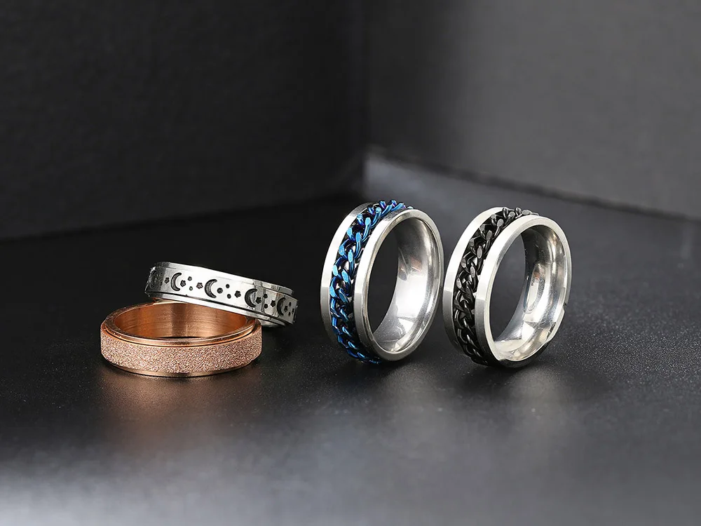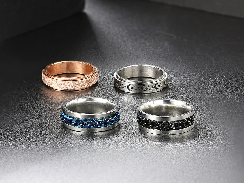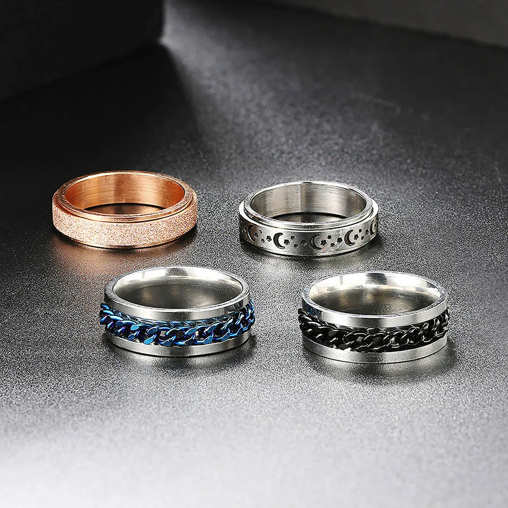 Мужское кольцо для беспокойства ZHOUYANG, Спиннер из кубинской цепи в стиле панк, кольца-антистресс из титановой стали в стиле хип-хоп, ювелирные изделия, аксессуары, оптовая продажа, KAR028