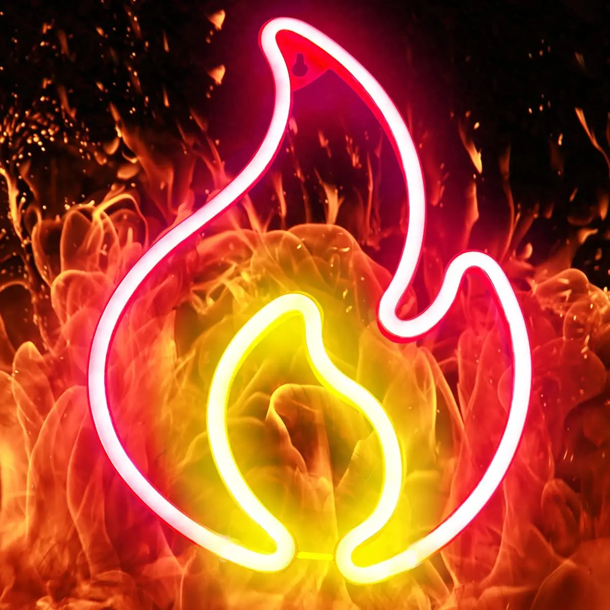 Неоновый знак красного и желтого пламени, неоновый светильник, светодиодный светильник, знак для декора стен, подвесной светильник в форме пламени