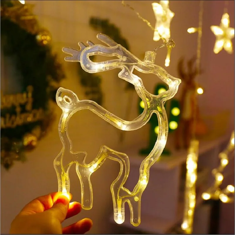 LED олень звезда лунный занавес светильник ЕС 220 В Рождественская гирлянда Сказочный светильник s Открытый для дома Свадебная вечеринка новогодний декор