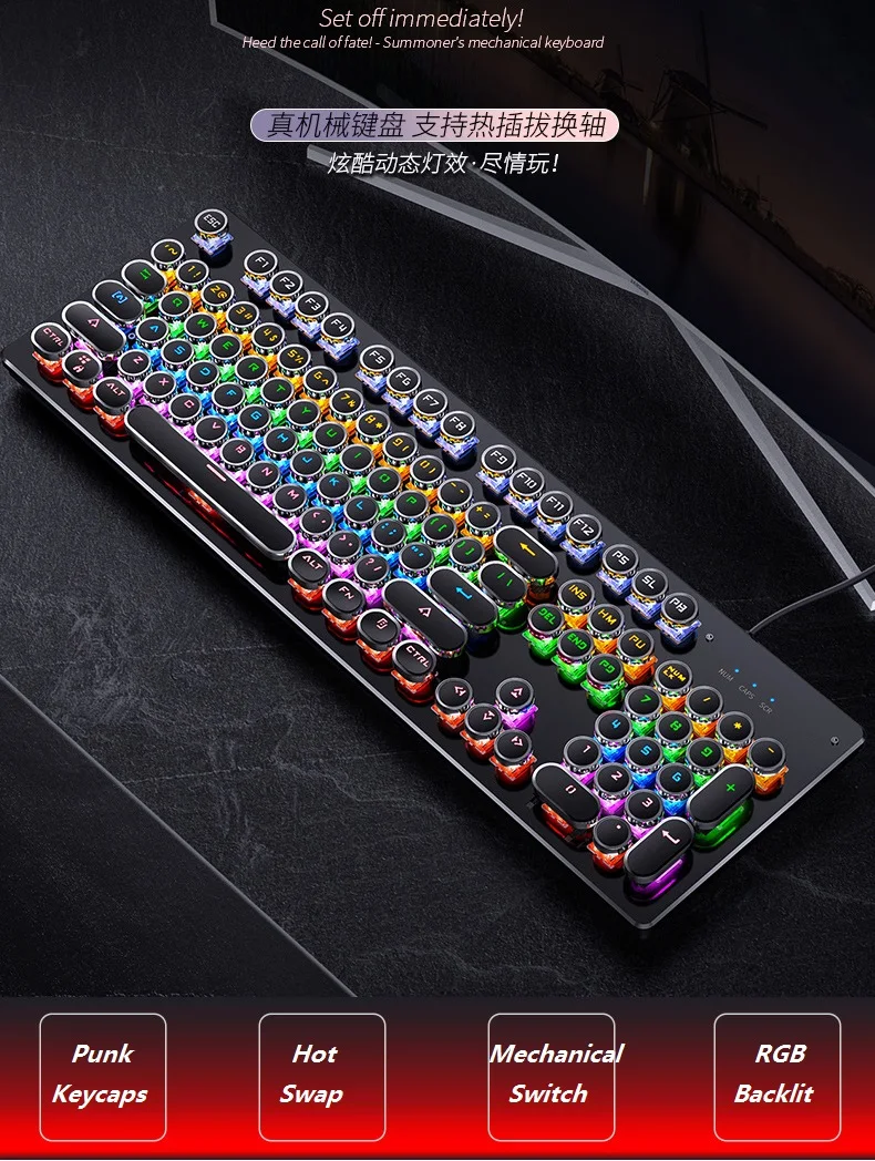 Механическая игровая клавиатура в стиле панк, RGB-подсветка, в стил...