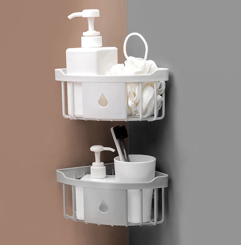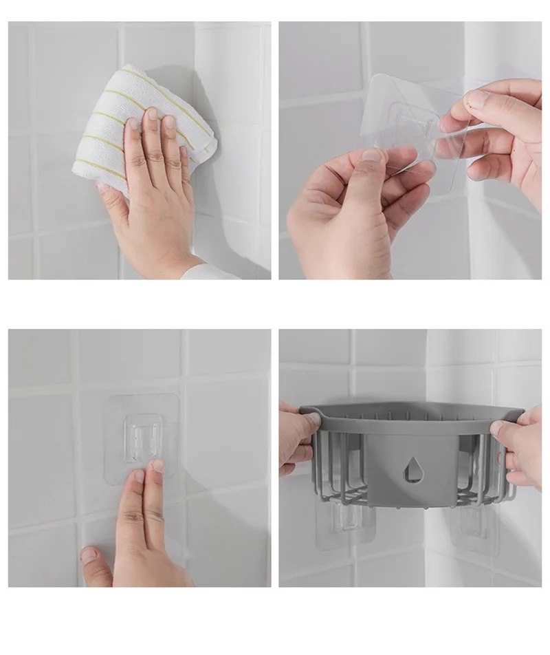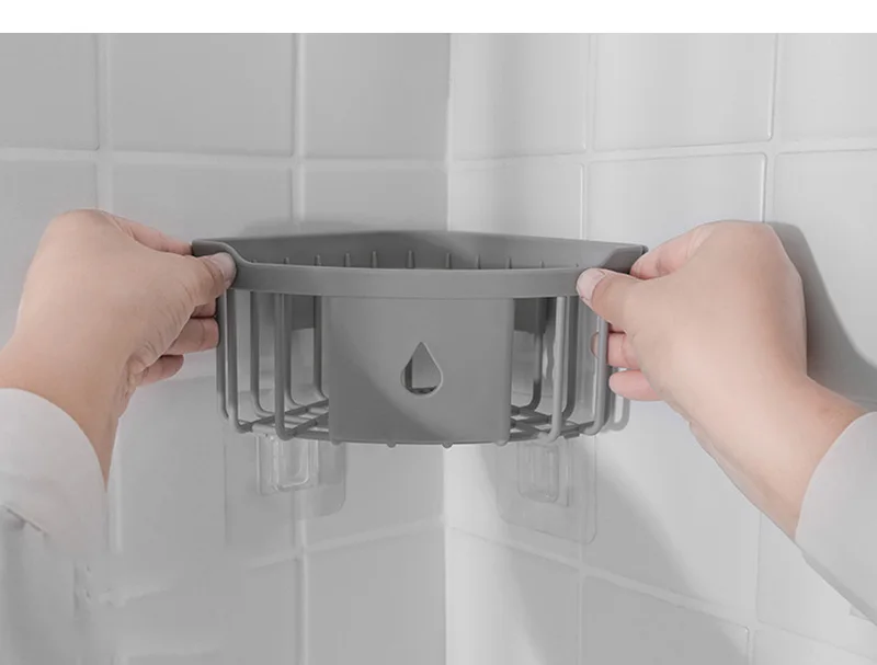 Особенности товара:-Высококачественный полипропиленовый материал, прочный и прочный-Треугольный дизайн, полностью использовать Угловое пространство-Настенный стеллаж для хранения, бесшовная паста-Полый стеллаж для слива