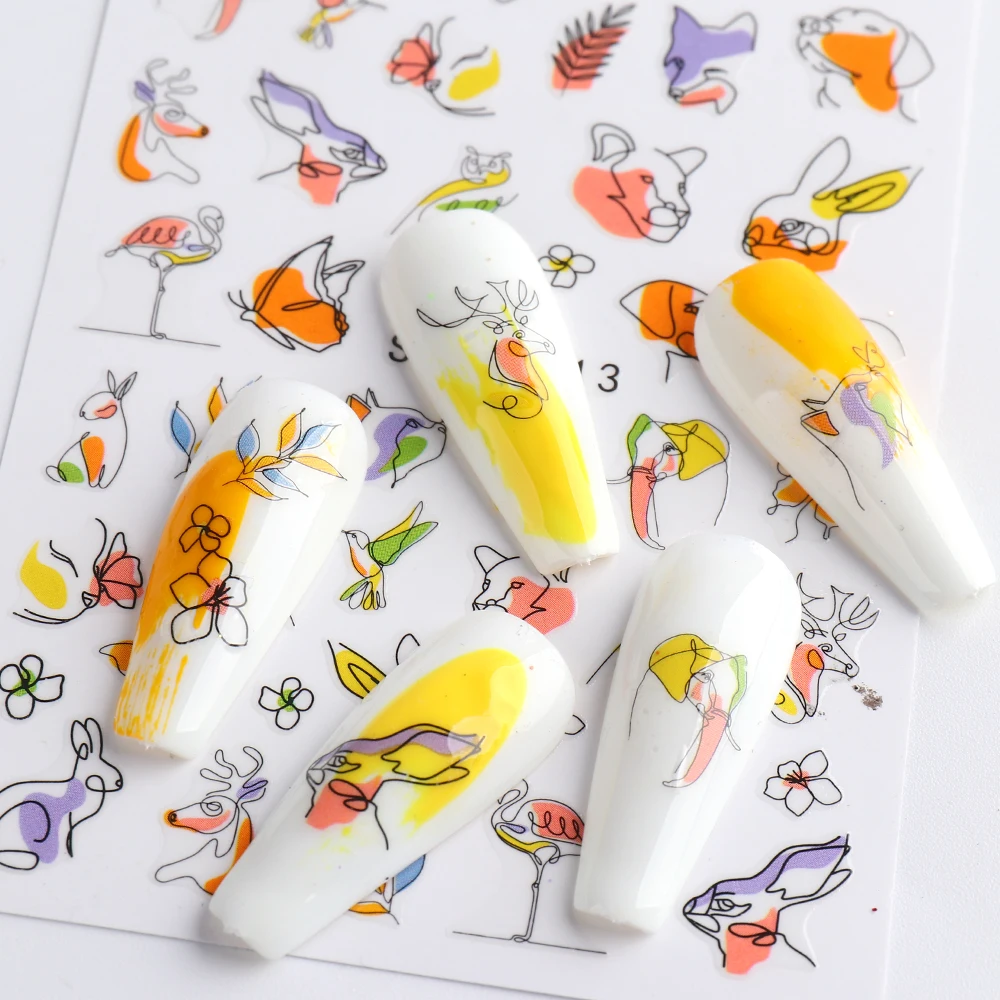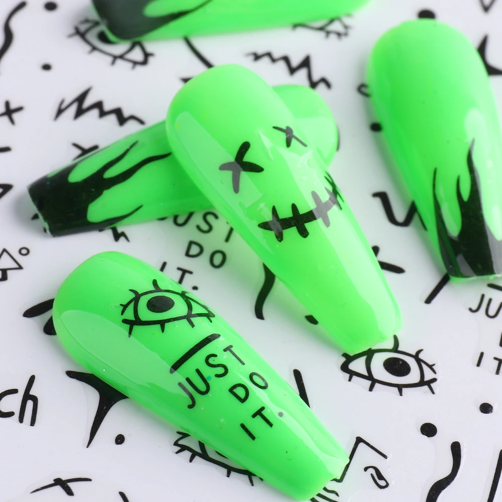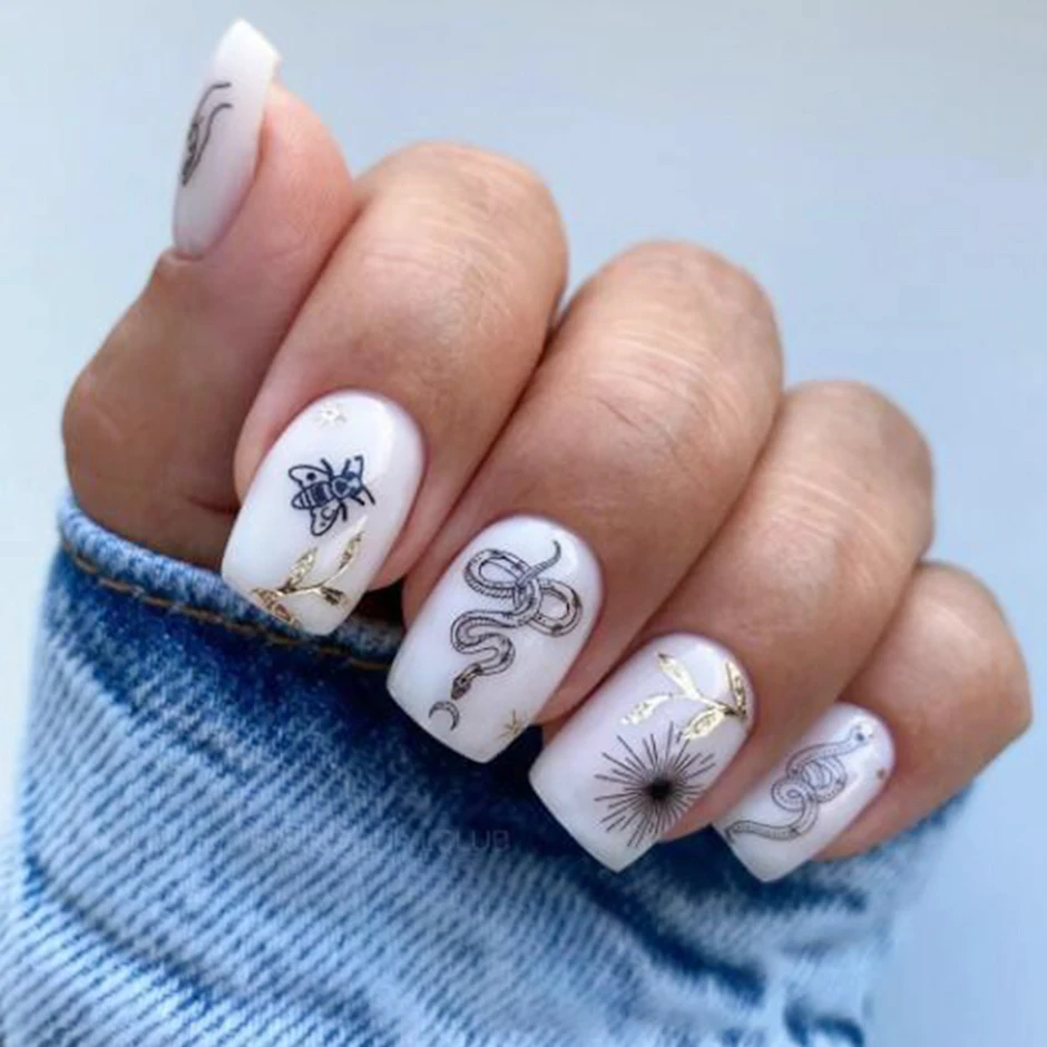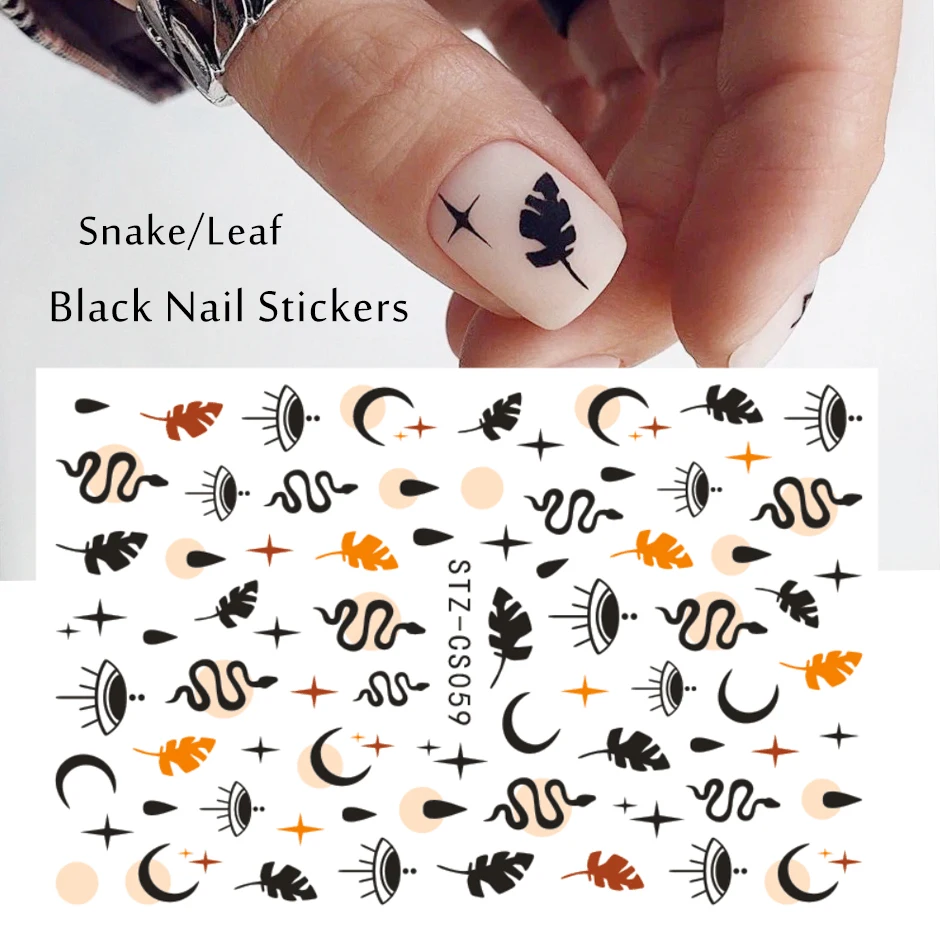 3D наклейки для ногтей в виде черных змеиных листьев, геометрия, животные, простой дизайн, наклейки для ногтей по мотивам маникюра, слайдеры, декор "сделай сам" GLSTZ-CS059