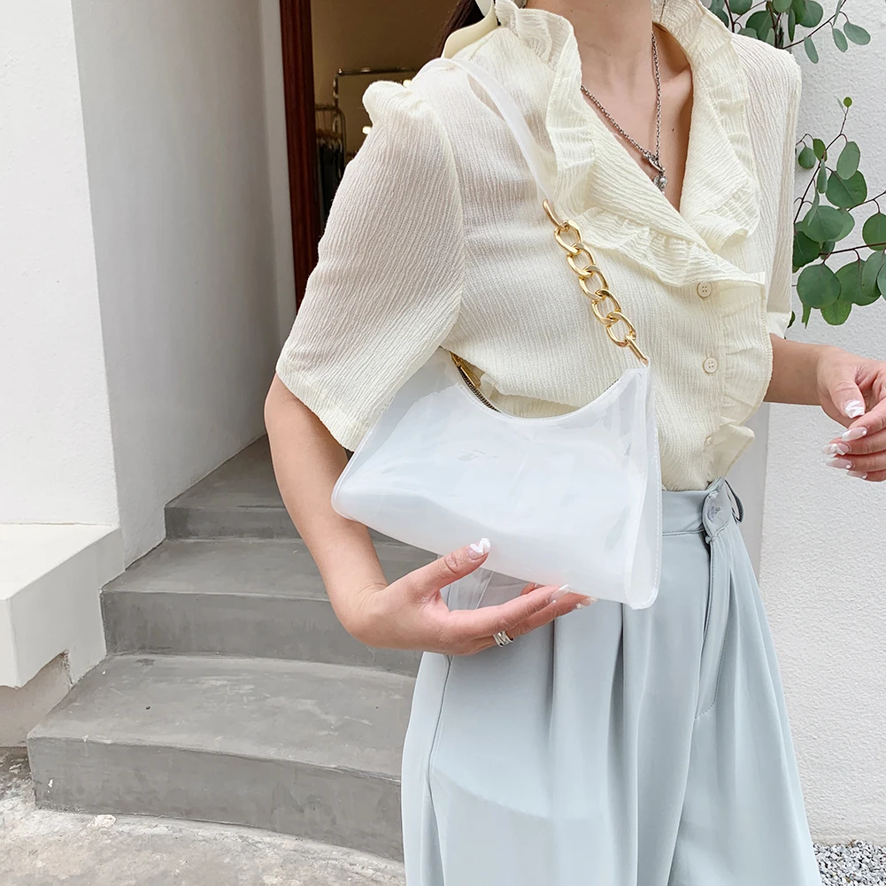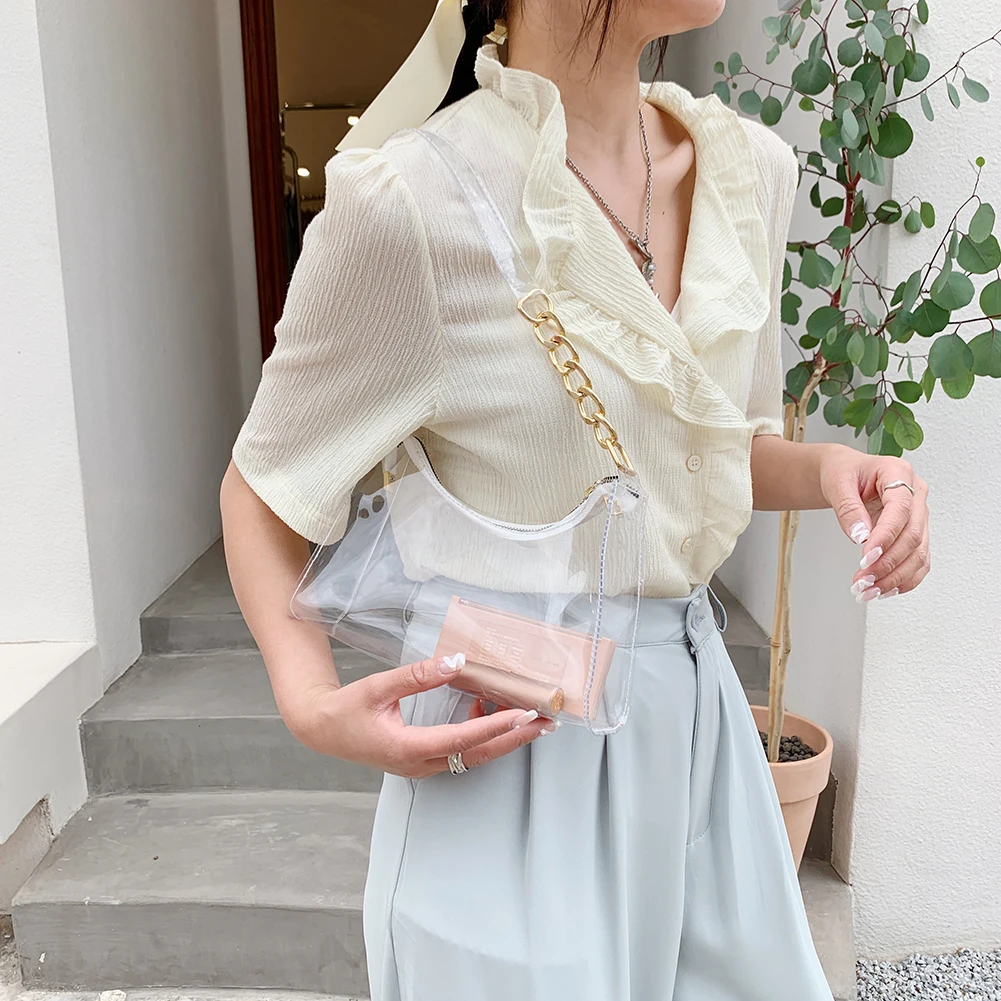 Модная женская прозрачная маленькая сумка на плечо с цепочкой, Повседневная дамская сумочка, кошелек