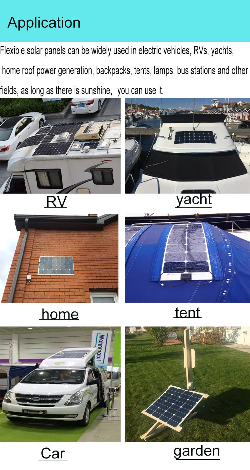 Белая Гибкая солнечная панель изготовлена из высокоэффективной солнечной батареи 161*161 мм, она более мощна, чем монокристаллическая солнечная батарея 125*125 мм. Меньший размер имеет больше мощности